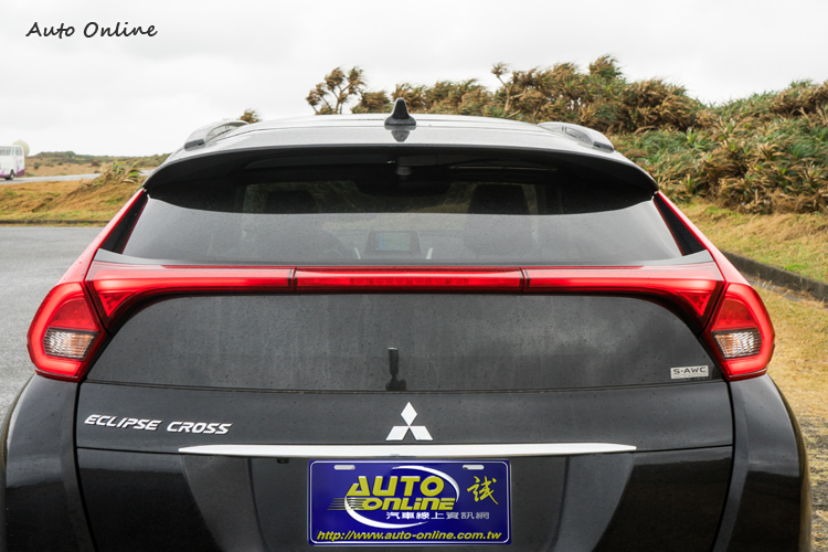 而在車尾,最搶眼的特徵就是與尾燈整合並橫跨整個後擋風玻璃、可以視作第二尾翼的第三煞車燈,在晚上煞車亮燈的時候呈現出兩個「橫躺L」光形,非常漂亮且辨識性很高,但對駕駛者的後方視野也會小有影響。下方橫跨後保險桿的飾條與兩片式的車底護飾板則再次強調了它的SUV本色。