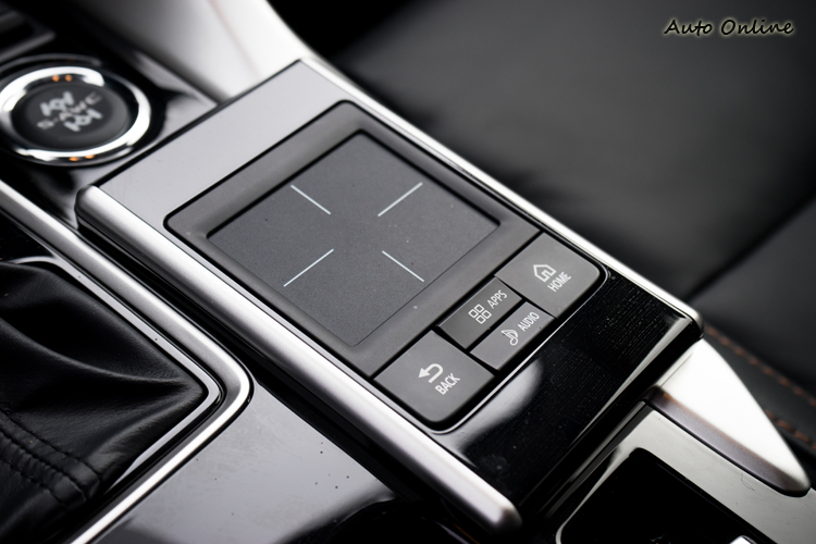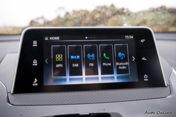 在中控台的上方,(中規以上)配置著與Outlander不同的七吋薄形彩色觸控顯示幕,提供音響、電話免持、藍芽音樂播放、行車資訊、倒車顯影等的顯示功能。也支援Apple CarPlay功能來讓iPhone功能在其上操作(可惜不支援Android Auto),但衛星導航系統則從缺。而在排檔座旁邊還配置了觸控板與快捷鍵來輔助操作。只不過在經驗上來說,觸控板並不見得比按鈕、旋鈕好用,最好是直接在觸控螢幕上操作最優。