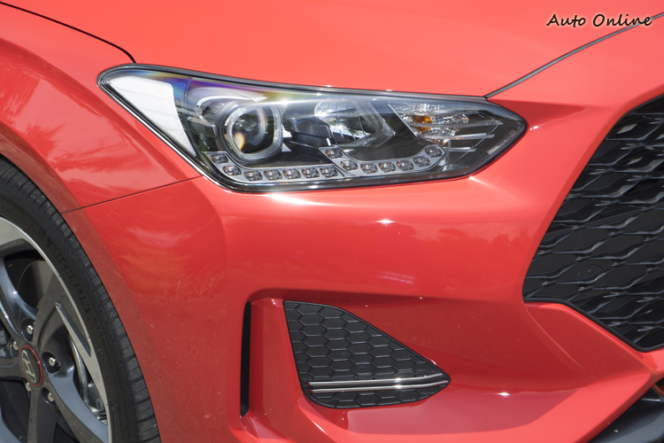 一代Veloster在大型三角不規則形狀頭燈的帶領之下,整個車頭顯得比較張揚。