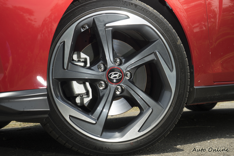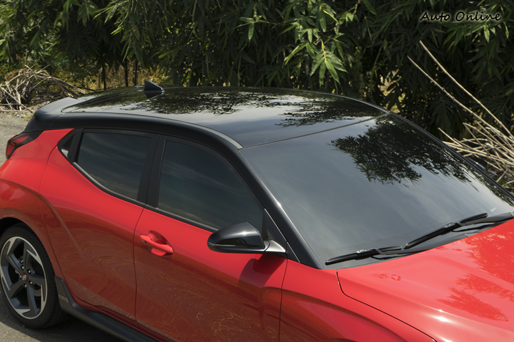 並在前後輪上康刻意加入造型折線來強調輪拱,讓18吋旋動雙色鋁圈的視覺感更強。比起車頭與車側,車尾造型算是最為「強悍」。以多道造型線條營造豐富層次和稜角剛硬的形象。而一些空力件如前下擾流、車尾分流器、車頂後方的擾流尾翼等,再加上從車旁看步道的底盤平整化工程,讓人感到除了玩心與一些潮味外,新Veloster也在運動跑格上更下功夫了。