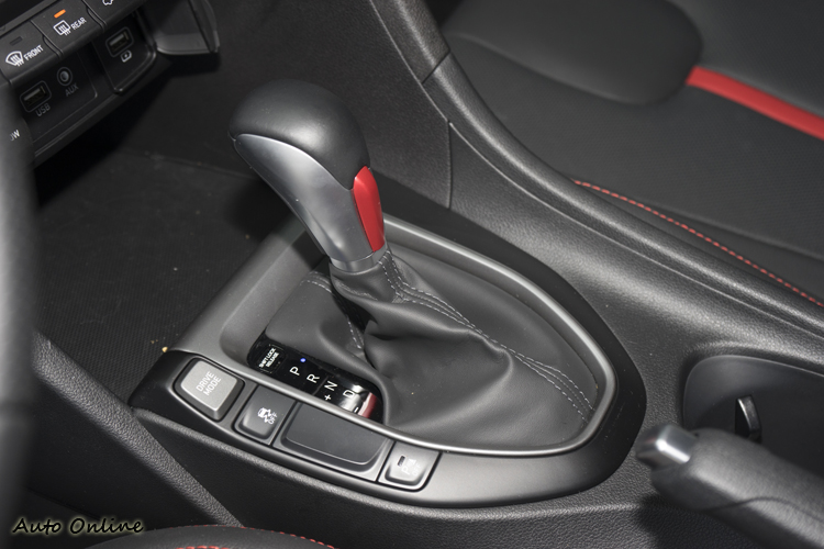 中控台上配置八吋多媒體觸控螢幕可說是改款後的一大亮點,選單與圖形介面設計則與品牌其他新世代車款大致相同,看得出車廠在產品規劃上的策略。不過除了多媒體撥放、倒車顯影、通訊、Android Auto/Apple Carplay等功能外,因應Veloster的性能屬性系統還多出一項儀錶性能資訊顯示的功能,在畫面上以三圓錶形式顯示瞬間增壓值、G值與扭力輸出值/車速等在做激烈操駕時比較會在意的相關資訊。就像以前改裝族喜歡在中控台外裝三圓錶一樣,只是現在已經從類比轉到數位化時代,相信不少有改裝經驗的人都會有點感觸。