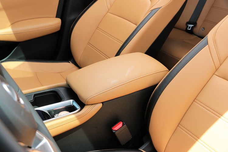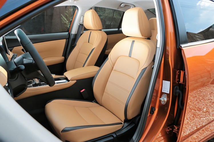 進到車內能感受到老大哥的影子,中控台的整體布局如同Altima大氣、有型,唯一不同之處是冷氣出風口從方形改為Sentra專屬的圓形。中控台上方搭載領先對手的九吋觸控螢幕,並且率先在國產車上導入無線Apple CarPlay系統,上一次看到此配備是在BMW車款上。駕駛操作介面人性化且易懂,方向盤上方控制按鍵、冷氣介面、排檔桿、儀表板等,使用、判讀無壓力又能輕易上手。
