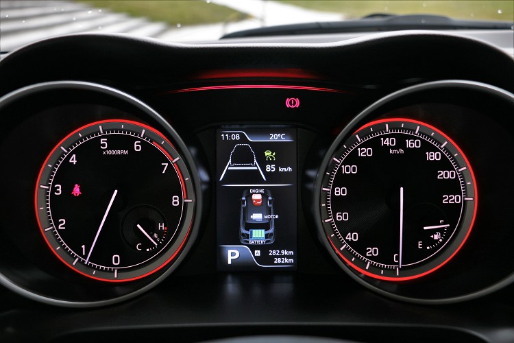 ▲儀錶板中間屏幕可顯示油電系統作動情況。
