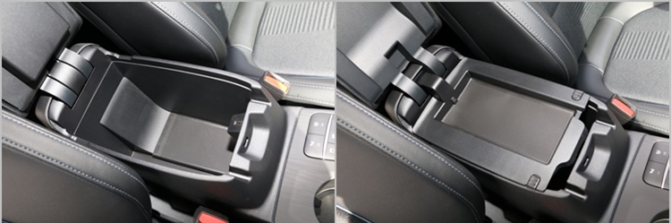 ▲中央扶手具有兩段收納設計,無論放置手機或大小雜物都很方便。