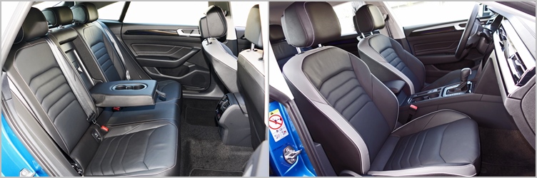 舒適配備是旗艦的基本要求,Arteon前後Nappa真皮座椅都有加熱功能,駕駛座還有按摩和記憶功能,而且駕駛者的視野絕佳!其他像抬頭顯示器、10.25吋數位儀錶和9.2吋觸控螢幕主機,當然全都是這個等級該有的標配;整合主機除了內建衛星導航,還支援手機連結和手勢控制功能。在實用配備方面,也提供無線充電座、USB Type C充電孔,就連置物空間也不少。