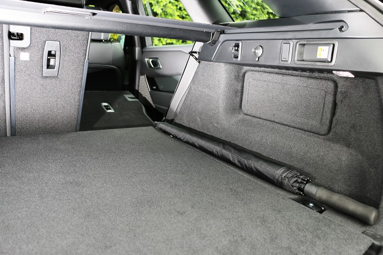 乘坐空間維持出色水準,後左有獨立出風口但沒有溫度可控制,椅背可以做適度的角度調整,頭部上方有全景式天窗可降低流線車體帶來的壓迫感。後行李廂尾門電動啟閉,正常的乘坐五人配置有748公升容積,如果後座椅背傾倒之後可達到1,811公升置物容積,帶任何物品去旅行都不成問題。
