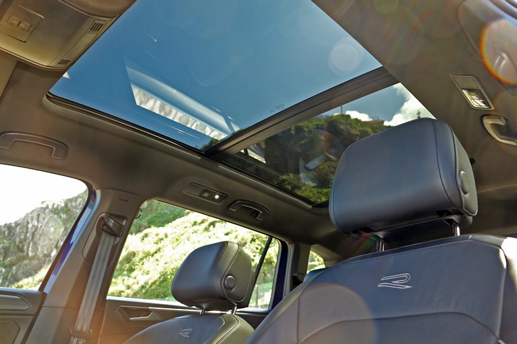座椅方面,380 TSI R-Line Performance同樣配置的是運動型皮椅,不同的是,它在椅背皮面上多了R標誌的繡飾,而且雙前座都有電動多向調整、電動腰靠、記憶和加熱通風功能,豪華程度相當不錯。其餘像是金屬踏板、黑色頂篷和碳纖網紋飾板,都是此車型才有的專屬配備,當然像是抬頭顯示器和Harman Kardon 480W音響系統等高規格配備,也全部不用另外選配。由於多了天窗的緣故,所以在這款車上並沒有車頂大型置物盒這項設計。