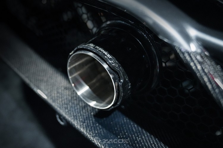 ZACOE在車頭透過重新設計行李箱蓋,使正面線條更有幾何結構之美,超大的一片式下擾流與原廠車頭的輪廓呼應,這兩個部件在車頭相映進而創造出原廠所不能企及的未來盔甲感。ZACOE使用電腦輔助設計讓前葉子板新增的寬體部位正好切齊車門卻不影響開門角度,上面的散熱罩就如車燈旁邊的進氣口不只是寬體造型的延伸,它們更能導入空氣並有效地排放以降低煞車時所產生的高溫,進而影響車輛的煞車表現。藉著ZACOE的設計可以強烈地感受到原廠所沒有的層次感,要將設計、功能與原廠設計語彙如此流暢地結合實在非常考驗設計團的功力。