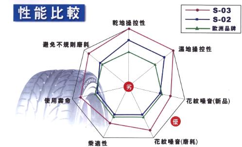 ▲S-03在濕地表現和輪胎耐磨性方面,更有了較過去產品更顯著的進步幅度。