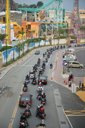 台灣哈雷最大規模National H.O.G. Rally![]() ▲各路哈雷車隊紛紛抵達高雄義大參加的哈雷車友與眷屬總計超過八百人,逾三百台哈雷重車來自台灣四面八方聚首於高雄義大,而”2010哈雷狂熱搖滾之旅”重頭戲-狂熱搖滾晚會-則估計超過有兩千人一齊見證哈雷狂野盛況,其中還包括了高雄當地熱情鄉親的支持與參與。義大世界全新設施與優美景色,絕對是哈雷騎士身心靈休憩與視覺享受最佳聖地。