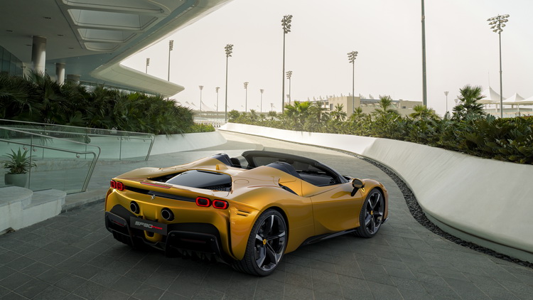 SF90 Spider所搭載的插電式油電系統是由引擎與三個電動馬達所組成,其中二個獨立配置於前軸的左右側,另外一個則配置於中置引擎與變速箱之間。引擎部分為3990cc排氣量V8汽油,可輸出780hp/7500rpm最大馬力與81.6kgm/6000rpm最大扭力。三具馬達的最大馬力輸出可達220hp,整個油電系統的綜效最大馬力達到1000匹。搭配八速雙離合器自手排變速箱與四驅系統以及相當輕量的1670kg重身軀,讓它僅需2.5秒即可完成0-100km/h加速,極速可達340km/h。系統搭載7.9kWh蓄電容量的鋰電池,在「eDrive」純電動模式下具有25km的續航能力與135km/h的極速。