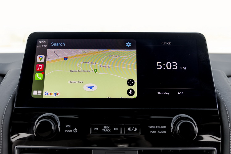 ![]() 新年式QX80全車系標配12.3吋的高解析度「INFINITI In Touch」顯示螢幕,支援無線Apple CarPlay與有線Google Android Auto平台。同時也提供具車道指引的衛星導航系統與車廠所推的「InTouch」服務。