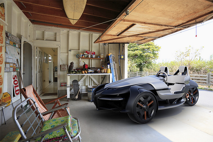 概念車採用開放式結構,沒有車門,同時提供並排座椅的配置,擋風片的尺寸雖然不大,行進間的氣流仍可透過車頭特別設置的導流通道,在衝擊人體之前就進行導引加以排除。