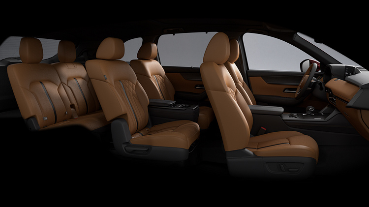 車室透過多樣材質及不同色階,33T AWD Premium車型配置雙模式大型全景天窗,全車系標配前座雙區/後座獨立恆溫空調附第三排獨立出風口,高階車型更配有Nappa 真皮座椅搭配雙前座導流式通風功能,並提供雙前座十向電動調整、駕駛座座椅位置記憶功能與四向可調電動方向盤。