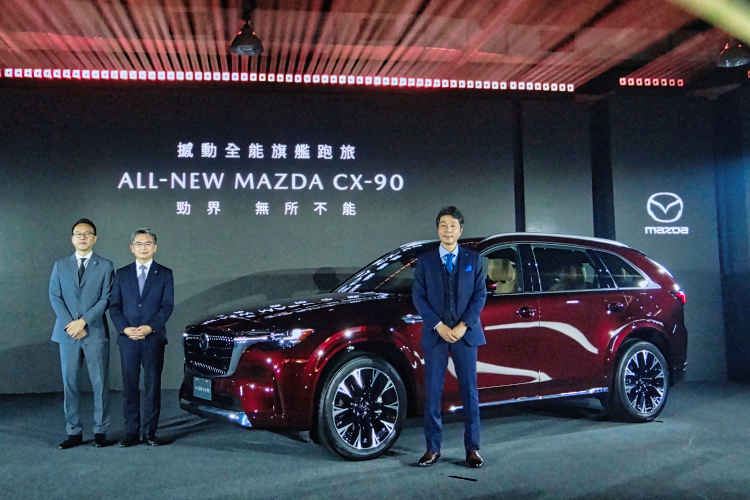台灣馬自達發表品牌第二款搭載縱置後驅平台的旗艦休旅Mazda CX-90,標榜強悍性能輸出、雅緻品味設計及新世代人馬一体駕馭樂趣。CX-90共推出正七人座的33T AWD Elite(179 萬元)、33T AWD Premium(203 萬元)及六人座33T AWD Premium Captain Seat(211 萬元),並於5月25日起進駐全台展間。