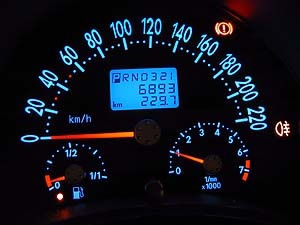業務員面有菜色「漂亮小姐不會陽春啦(這位業務員有話慢慢說,該停頓就停好嗎!),有電子防眩後視鏡、雨滴感應雨刷、天窗、CD,音響很棒喔!要不要試聽一下」說著說著就將夜燈開關打開準備調音響…。突然,∼啊∼,少女的尖叫聲真的不同凡響,「媽!藍色的儀錶耶,就這台了啦,不挑了,就這部」。喔!拜託,大小姐,妳以為就只有這部車是藍燈儀錶板哪!看著業務員一臉錯愕,換我想大喊「發呆勒!還不快去拿訂單」。多虧「藍色情挑」,才能搞定這位大小姐…。
