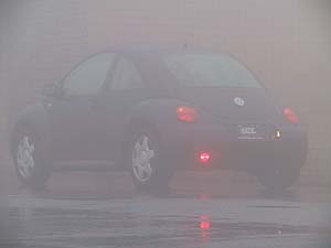 還好,只不過是New Beetle的車尾輪廓有點像車頭,在大霧中一時看不清楚。這時想起了非洲土著的面具,不是戴在前面的,是擺在後腦杓用來嚇唬身後突擊的野獸。還好,New Beetle的尾燈是紅色的,如果有人改成白色的,在大霧中會把後方跟車的駕駛嚇死:有∼鬼∼倒∼車∼開∼山路﹍﹍暈了!