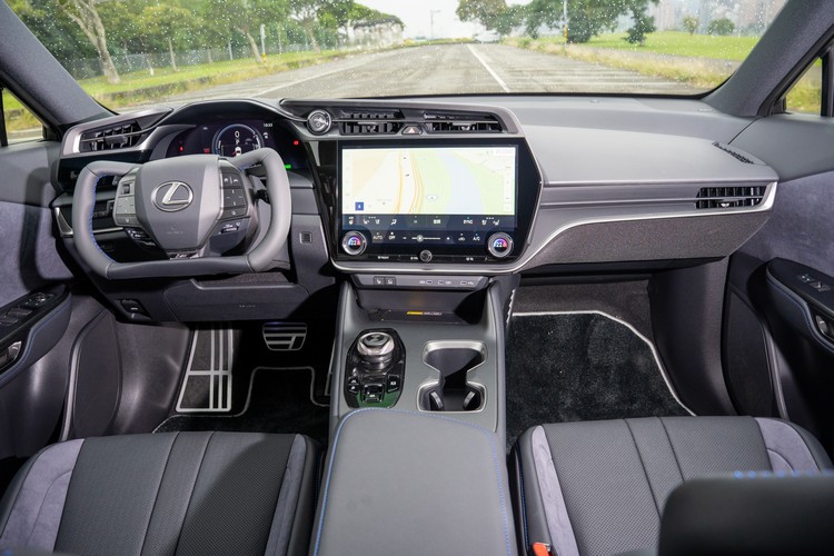 小改後的新RZ維持雙eAxle電子傳動軸架構,所搭載的新一代鋰電池組容量從71.4kWh略增為76.96kWh。前後軸馬達的輸出功率分別從204ps與109hp提升至227ps,試駕的550e F Sport車型系統最大輸出達到408ps,也讓它的0-100km/h加速成績來到4.4秒的水準。 ![]() 前後軸雙馬達輸出功率均為227ps,系統綜效最大馬力為408ps ![]() 線傳電控的換檔介面操作起來直覺不易誤操作 雖然這次試駕到的550e F SPORT比過去試駕的450e在動力上大增了將近百匹馬力,但正如文章開頭所提,RZ並不走猛暴性能感的路線,加速踏板踏下去阻力感仍跟過去一樣的大,但在淺的踏板深度(行程)下其實還算好控制,讓你在常用速度範圍內都很好控制力道來調整車速(除非你右腳真的沒事都在失去理性似地重踩),保持車子以穩定速度行駛也更輕鬆(定速可以少用些了)。 ![]() 當然,它超過四百匹的馬力也不是放在那裡做裝飾的,當加速踏板踩得較深時,都可以感受到加速力道比之前更為充裕,隨著踏板的持續踩深車子的中段再加速感也很明顯也很線性,即使是一般人也能在中、高速下更有信心地掌控車速, ![]() 依然提供Normal、Sport、Eco、Range、Custom等駕駛模式,也依然只能在選單裡選 車子的煞車動能回充系統仍然是提供四段的回充強度調整,強度特性也與之前的450e大致相同(沒有實際的單踏板駕駛功能),筆者個人覺得即使是一般市區道路調到第三段都不會有太大的頓挫感,想有好的能耗表現的話平常行車不妨多調至高段位。 ![]() 在F SPORT車型有個有趣的設計就是可以模擬手排功能的「M模式」,按下按鈕後方向盤後方的撥片就變成換檔撥片,藉由馬達輸出與煞車控制來營造燃油車升降檔位時動力的變化(例如檔煞感),再配合專屬的動力聲浪控制系統 (ASC) 參數來模擬引擎轉速變化時的引擎/排氣聲浪變化。實際使用之下老實說聲浪的部分比較吸引人注意,換檔的感受就還好,多了點互動感而已,之前試駕過的IONIQ 5N做的更為實在也更讓人有熱血性能感。