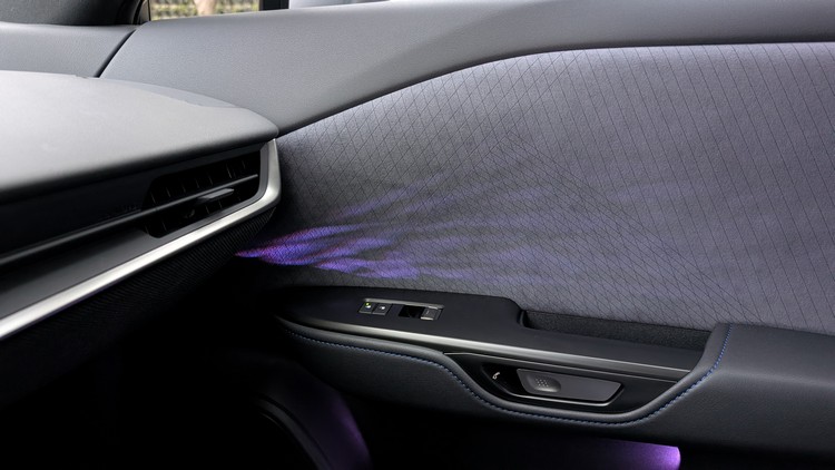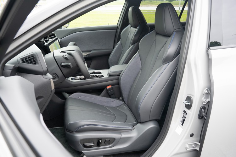 車室內的控台介面佈局乍看之下與改款前也是沒什麼改變,最明顯的則是亮點就是駕駛座前方那與一般車輛圓形方向盤不同,比較接近賽車用的運動造型方向盤,因為沒有上下握輻,所以減少對閱度數位儀錶時的遮擋影響,方向盤上的功能按鍵採垂直排列的配置方式讓駕駛者能夠盡量用拇指就完成操作,其他四指可以更穩定地抓握柱握輻。至於實際操作起來的感覺會在後面再詳述。 ![]() ![]() 因應電控轉向所採用的類賽車式方向盤,減少對視線與駕姿的影響 方向盤前方的數位儀錶設計上大致與改款前相同,以現今的電動車對手相比顯得比較傳統保守一點,各項資訊感覺比較「擠在一塊」不能眼光一掃就能立即讀到自己想知道的資訊。可喜的是,改款前電池剩餘電量是用量表方式顯示,現在改為百分比,比較精細的數據表示方式也比較符合一般人評估電量的習慣。 ![]() 數位儀錶跟改款前差異不大,將電池剩餘電量改以百分比顯示更符合使用 ![]() 標配前擋投影顯示,不過儀錶板位置其實已經蠻接近視線蠻容易閱讀 帶著面向駕駛者角度的14吋資訊娛樂觸控螢幕也沒改變,選單功能的規劃邏輯也算好懂,常用的空調和音響音量調整功能則在螢幕下方以觸控與旋鈕來操作,不過駕駛模式沒有實體切換鈕必須進螢幕選單來切換這點要小扣分。 ![]() 14吋中央觸控螢幕維持原設計,空調則可透過下方觸控介面操作 操作介面都沒改,那到底小改改了啥?車廠還是了解他們的客戶比較在乎車內的質感與舒適感,所以在這方面的加強著墨較多。像是門飾板採用Ultrasuede麂皮材質搭配雷射雕刻紋理,在F SPORT車型上是以交錯斜線與幾何構圖傳達簡約科技感。而在中央鞍座換檔介面周邊則是以Micro-geometric Pattern Film飾板細膩的金屬質感來造運動化駕駛氛圍。 ![]() 具有細膩金屬質感的Micro-geometric Pattern Film飾板 ![]() 車門飾板以交錯斜線與幾何構圖構成,投射式動態氣氛燈則以三具LED燈組將光源重疊、交錯來營造光影流動的效果 降低車內噪音與震動對於乘坐舒適性相當重要,所以在這次小改中也做了多項升級,將後座下方地板隔音棉位置最適化、在車門飾板、座椅側飾板、後門飾板和後行李廂等處採用高性能隔音材料;車身底板也採用高阻尼膠,以最大限度地減少不必要的振動。 ![]() USB 充電規格升級為USB PD,可加速手機充電效率、支援更大消耗功率的設備 ![]() F SPORT車型配備數位車內後視鏡 運動座椅與可調光天窗