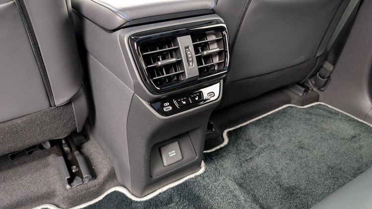 500e旗艦車型雙前座椅相較於450e旗艦在座椅肩部與坐墊側面追加縫線裝飾,試駕的550e F SPORT則是配備在肩部與坐墊側邊包覆性更好的運動座椅,側邊則以藍色縫線綴飾。 ![]() 座椅在側邊包覆性上有加強,並以藍色縫線點綴 ![]() ![]() 車內頭部空間算是普通,後座腿部空間則很充裕 ![]() 後座出風口下方與行李廂追加1500瓦功率的AC插座方便車主使用小電器 ![]() 行李廂空間在標準狀態下為552公升,放倒後座椅背後的空間也還算平整