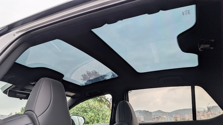 ![]() 地板平整化隔板下方的置物空間適合放充電線、天窗手動遮陽簾 乘客頭上的兩片式天窗在改款前就有淺色霧化的調光效果,現在改款後則採用深色霧化的設計來增強遮光性與隔熱性,而在透明時也有更好的視野穿透性。根據車廠的測試數據,在霧化開啟下乘客頭部周圍的溫度可降低將近攝氏10度(比改款前降低14%)。如果霧化下你還嫌遮得不夠,原廠也提供固定式的手動安裝遮陽板,平時可收納於行李廂隔板下,整合度佳、拆裝便利。 ![]() 可調光天窗現在霧化效果更深,也提供手動安裝的固定式遮陽板 ![]() 馬力大幅提升 續航里程也增加