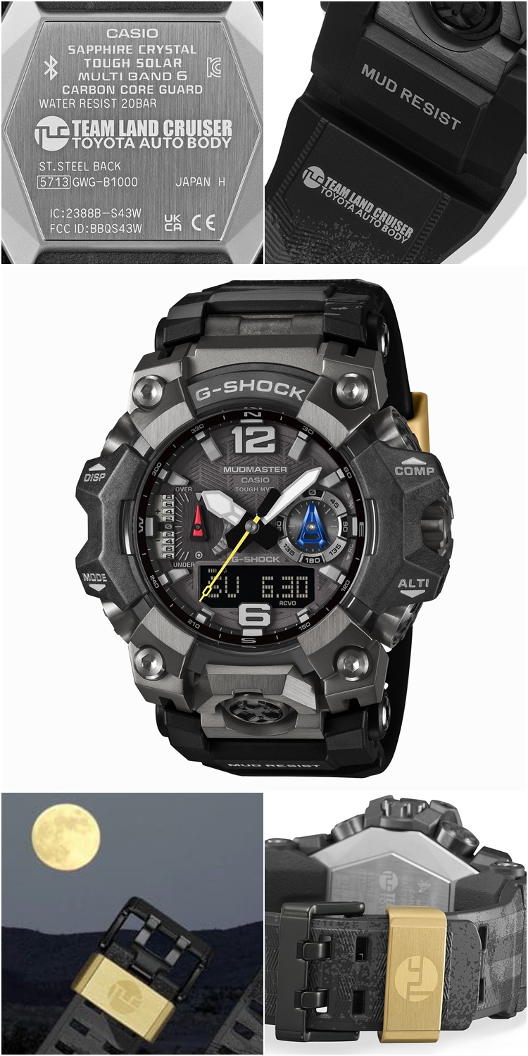 Casio與Team Land Cruiser Toyota Auto Body(TLC)車隊再次攜手合作,推出一款以達卡拉力賽為主題的G-SHOCK GWG-B1000TLC限量聯名錶,展現車輛與腕錶在惡劣環境下依然能保持運作的強悍特色。