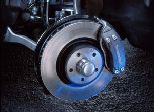 新E車系全面採用大尺碼、內部通風的前煞車碟盤,依車型差異尺寸介於295到330mm之間,這表示它們至少比前代車款加大了7mm的直徑。在後煞部分車廠搭配了300mm直徑的實心碟,較前代車款加大了12mm之譜,其中E500為了負荷較強的動力性能,後碟盤也是採用內通風設計。另外,新E這次也首度啟用了全鋁材質的煞車卡鉗結構。