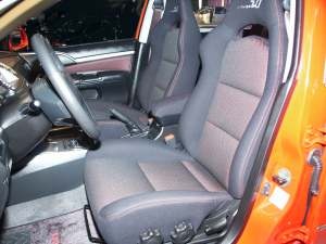 ![]() ▲Virage iO的仿跑車座椅及各種配備皆為業者用以凸顯產品轎跑風格訴求的重點專攻轎跑風格的Virage iO同樣採用三菱風格的車頭造型,不過水箱護罩上則以更簡潔的「斜柵」設計凸顯其迅捷銳利的外型,Virage iO分頂級的「極速型」和基本的「豪華型」,內裝也以紅黑/藍黑與Lancer車系區隔,並搭配EVO GTA三幅式進口方向盤,以及EVO GTA類手排排檔桿座,該方向盤上內建升降檔控制鍵,此為百萬房車以下僅見者。座椅則以仿EVO桶椅搭配,亦為此訴求特定族群車款的另一項特徵。