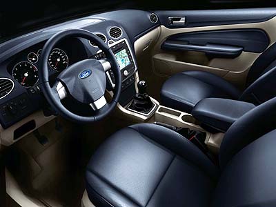 鮮豔、明亮的藍色,是 Sport 與 Titanium 兩種車款的內裝環境特色。內裝下半部結合淺色的石材色彩,偏藍色調使 Focus 內部感覺溫暖與舒暢。此外 Focus 各車款也保留黑色讓顧客選擇。