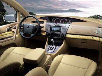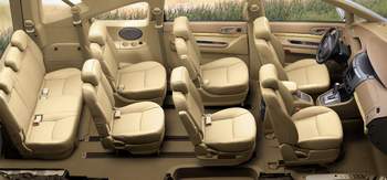 ![]() Stavic內裝採高級米色軟質膠料、搭配全車真皮座椅與鈦銀金屬飾版,營造媲美頂級旗艦的質感;中控台上方更設計一個浪漫花插,營造出溫馨的室內氣氛。另外,座艙配備包括:前、後獨立控制空調系統(搭配車頂四處出風口)、前置6.5吋、後吸頂式9吋液晶螢幕,搭配單片DVD/MP3影音系統,以及倒車影像顯示功能(車尾攝影機),豪華數位化配備一應俱全。另外,駕駛座/副手席椅背更內建了小型摺疊餐桌、四個12V電源,以及多處置物與置杯架設施,也讓同行的貴賓或親友備受呵護。