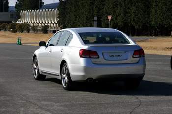 高速行駛與舒適性:足與雙B並駕齊驅![]() 這次在東富士試驗場進行的實際試駕僅有環型跑道一項,測試車輛有GS430、GS300以及主要對手BMW530i、M-Benz E320等,每部車在跑道上駕駛兩圈。GS430加速非常輕快,輕踩油門即可達150km/h的試車設定速限,GS300排氣量小,但拉轉速亦相當順暢,BMW 530i的加速與轉彎的反應都相當敏銳,M-Benz E320則表現沉穩,抑制路面跳動的能力以及底盤隔音均為上選。相比起來,GS車系在舒適性表現優於BMW,引擎的寧靜度優於M-Benz,可以讓人很輕鬆地駕駛,卻沒有特殊的操控風格。