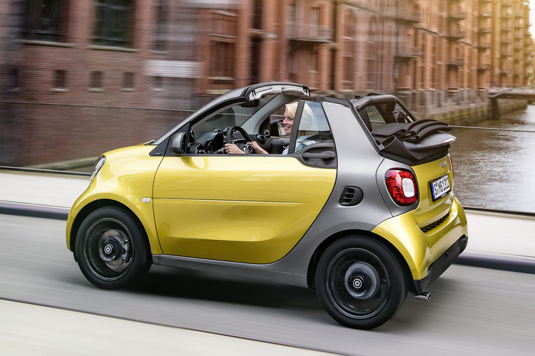 大改款Fortwo Cabrio這次在車頂上的軟頂設計又有新花樣,除了配備滑動啟閉式軟頂,面積也比舊款更大,12秒內就能呈現出完全開放的車頂空間。這項原廠稱為tritop結構的軟蓬新設計,不但是同級車首見,也應該是目前敞篷量產車中第一次出現的創舉,對於訴求玩樂的SMART來說相當適合。
