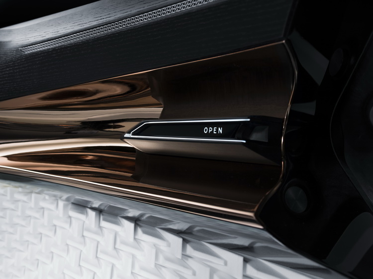 車室內裝則是承襲2010年SR1概念車與2010年208所帶來的i-cockpit設計概念,營造更好的人機互動介面與人體工學乘坐空間。例如當駕駛者用手上戴的智慧型手錶來開啟車門時,還會傳來經過設計的獨特開門聲。車內有80%的飾板是採用3D列印方式所列印出來的。
