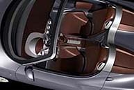 中控台怎麼沒有空調,莫非Tango又是一部「LOTUS」競技版免空調?別急,空調開關整合在排檔座旁,讓駕駛者右手在排檔桿四周靠觸覺就可以控制所有開關。頭枕後方有左右兩處突起的行李廂開口,頂蓋披覆經過防水處理的皮革,行李廂內各有一只專用提箱,雖然空間上各放一頂安全帽就呈現飽和狀態,但小型雙座敞篷跑車加上管狀結構車身設計,原本就無法要求高實用性。但車尾置物空間仍是有的,不過您或許會覺得設計師將車身設計過於「家具化」,居然出現抽屜造型!大小只足夠放置修車工具和小雜物,只稱得上是「工具櫃」。您覺得行李廂蓋在緊急煞車時會自動上升充當飛機翼上的「阻風板」功用嗎?想太多!畢竟這部概念車室會付諸量產的,別把它神話。原廠體貼敞蓬車主雨天的心情,精心設計功夫龍材質可拆式硬頂,說穿了,Tango隨車沒有任何可收納式軟、硬頂設計,車主上路前可要考慮清楚氣候問題。