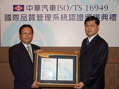 有鑑於汽車產業的規模經濟特性,以及台灣汽車市場胃納的侷限,中華汽車在10多年前就體認到擴大國際合作及分工的重要性,便朝向「鞏固台灣市場、拓展大陸事業、擴大外銷事業佈局」的中長期發展策略邁進,積極由提昇車輛產品的設計品質、製造品質與企業整體經營管理體質等與國際接軌的關鍵作為著手。1993年率先國內車廠榮獲國家品質獎的最高榮譽後,中華汽車陸續通過了ISO 9001、ISO 14001、TPM優秀賞,並於2004年成為台灣第一家獲頒TPM特別賞的企業;為了厚實邁向國際化車廠的競爭實力,今(2006)年,該公司更成功挑戰象徵全球汽車業國際品質管理的最高制度,通過TS 16949國際汽車品質管理認證,成為台灣唯一一家「全廠、全工程」均通過TS 16949認證的汽車廠。