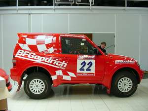 BFGoodrich輪胎曾經先後參加1999年和2002年巴黎─達卡越野賽車,協助夥伴車隊Schelesser-Renault 和Mitsubishi三菱車隊,先後勇奪兩次冠軍之後,2003年達卡越野賽中,再度和Mitsubishi三菱車隊合作贏得2003年達卡越野賽總冠軍。
