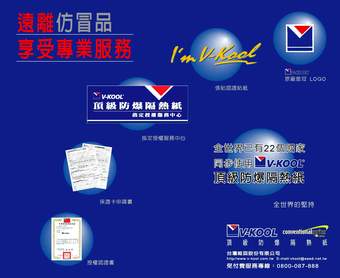 注重行車駕駛安全的V-KOOL (R),所強調的就是隔熱紙的透光性,百分之七十以上的透光率是V-KOOL (R)引以為豪的一項優點。在油價不斷上漲的今日,唯有選擇V-KOOL (R)頂級防爆隔熱紙,才能有效地節省冷氣能源與壓縮機之負荷,相對地看緊您的荷包;同時也能讓您遠離車室因高溫所產生的致癌毒素,提昇行車之舒適性。但要注意的是目前市面上出現商標極類似之商品混淆視聽,其品質與台灣維固股份有限公司所代理之V-KOOL (R)頂級防爆隔熱紙差異甚大,型號與保證卡也有所不同,消費者唯有指明台灣維固之V-KOOL (R)頂級防爆隔熱紙(有皇冠標誌且V-KOOL後方有註冊認證之(R) ),或到台灣維固之V-KOOL (R)所指定的授權經銷商施工,才能擁有與享受真正V-KOOL (R)頂級防爆隔熱紙所帶來的無線魅力。