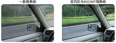 此外,部分車主為了加強車內隱密性,會考慮選購高外反光產品。然而要注意的是高反光隔熱紙容易影響行車視線及GPS等無線訊號之接收,為了車主之行車安全,低內反光產品會是較好的選擇。