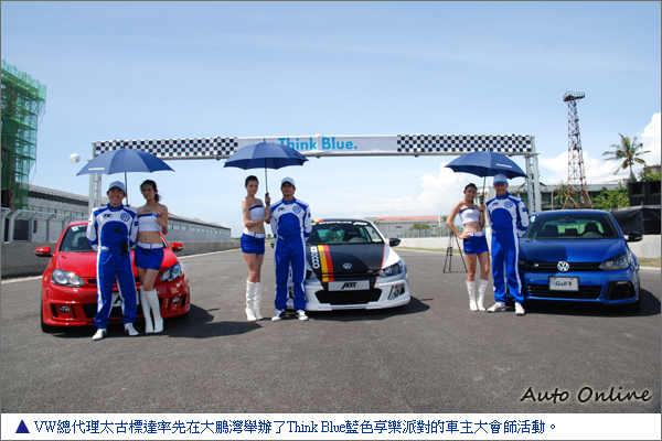 國內首座國際級賽車場即將正式啟用,VW台灣總代理太古標達汽車特地於8月13日,邀請國際級賽車手到屏東大鵬灣國際賽車場進行競車表演,並廣召全台VW車主到此會師,體驗Think Blue藍色享樂科技,並同時於臨近的青洲遊憩區,舉辦親子遊園活動以及知名藝人的演唱會,讓全國車迷們能在炎炎夏日時刻,共享一場難忘的歡樂嘉年華!