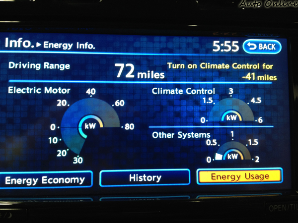 ▲NISSAN Leaf車內的中控台螢幕可顯示電動車的能源應用。