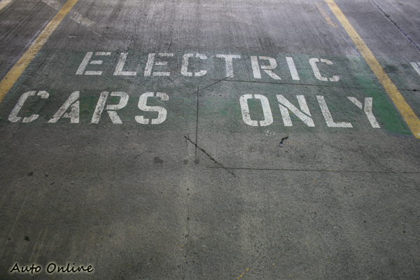 ▲位在舊金山市區停車場內的電動車專用停車格。