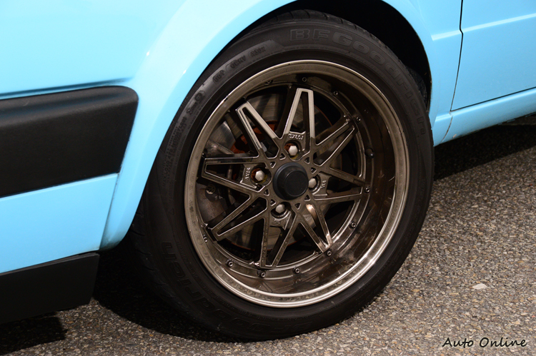 ▲與老車非常搭配的15吋OG外型仿Work鋁圈,搭配上Sachs紅桶避震器,外觀以及操控都大大加分。