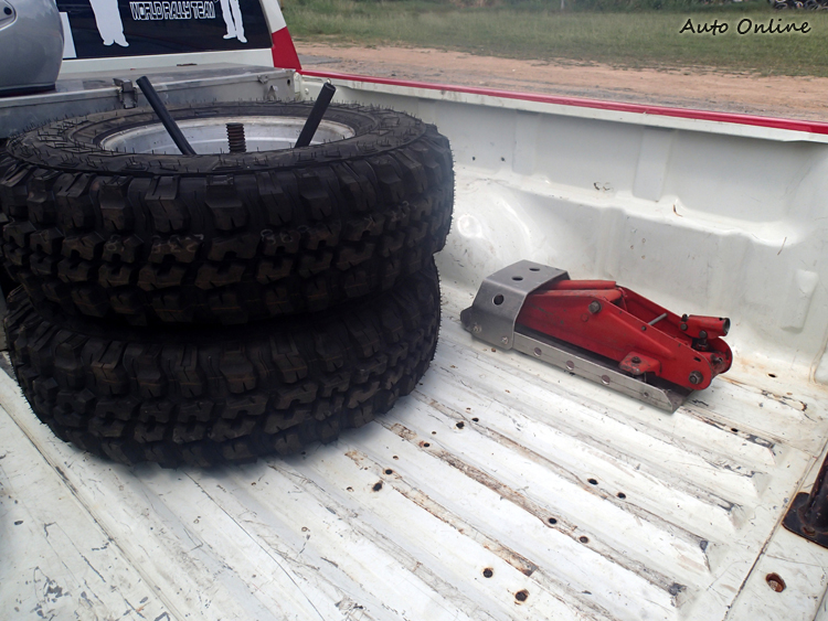 至於車外,貨斗上兩條備胎、頂高機、拆胎工具,這些在車輛安全檢查時,檢查員都會一一核對,少了一項很有可能無法參與這次的比賽。