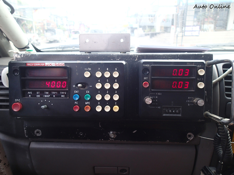 除了車輛的安全配備外,比賽過程中最重要的就是拉力電腦(RALLY Computer),這套系統會感應車輪的轉速來計算行駛里程,與每天會拿到的路書(RouteBook)內容來指引駕駛。但不是所有賽程的路面狀況都一樣,如果輪胎空轉就會造成拉力電腦里程數的誤差,必須透過電腦上的K值來調整。先利用柏油路面的RS路段來測試,當里程數準確之後,再以賽段路況微調,輪胎越容易空轉的路面就必須加大K值減少誤差,K值加多少必須不斷測試與經驗來判斷。