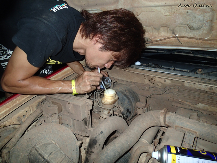 ▲小朋友可別輕易嘗試,叔叔有練過用吸管來換煞車油。