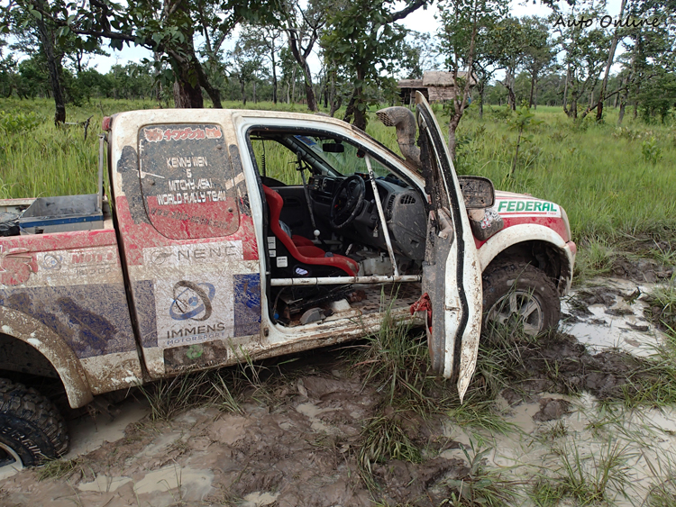 ▲17號車受困於及腰的爛泥中,夠力的絞盤幫助他們脫困,不過最後因為燃料耗盡困在SS5賽段裡。