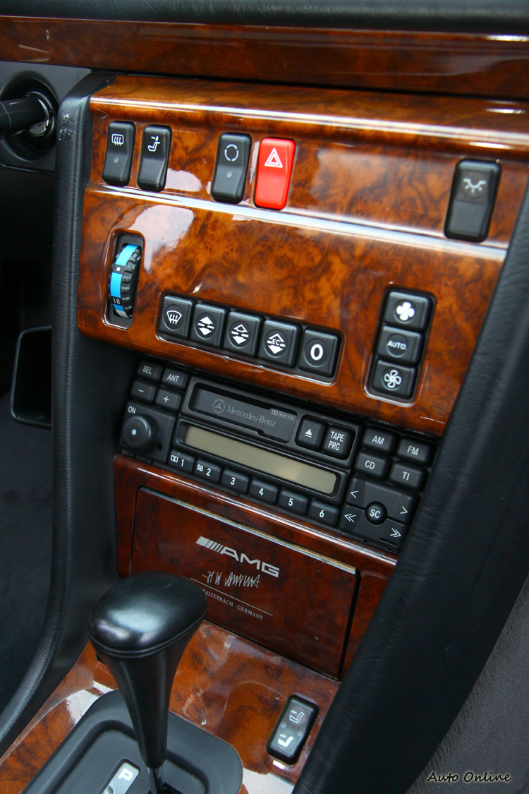 ![]() ▲當代的M-Benz車頭方正,就是有人特愛這種感覺。外觀同樣以當時400E為基礎,換裝AMG前後大包、側裙以及車門浪板,S2與S3就差別在車門浪板的顏色,S2是與車身不同色,而S3則會將浪板烤漆與車身相同顏色。 ![]() ▲AMG E400 Stage 3鋁圈採用AMG雙片式大餅框,車側浪板與車身同色。![]() ▲核桃木飾板是當年高級車必備品,就算是標榜性能的AMG E400也一樣。![]() ▲前座椅換上兩張AMG包覆性好的運動化座椅,但還是保有M-Benz該有的舒適性。![]() ▲後座座椅泡棉柔軟舒適,不虧是當年賣最好的M-Benz。![]() ▲時速表底300km/h,想證明請拿出那個心臟。![]() ▲冷氣空調控制介面簡單,下方還保有卡式的音響主機。![]() ▲後行李廂空間方正,高爾夫球具兩組都不是問題。