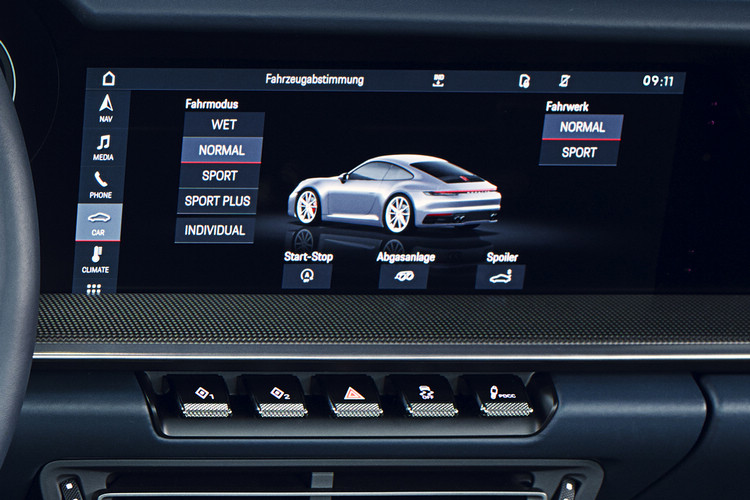 一直以來,Porsche總是不斷強調他們的911在賽道上的操控與速度有多麼傑出,然而卻從來未曾提及911在雨天時面臨的潛在危險;輕車體和超寬胎確實協助911創造極佳操控極限,不過這是建立在乾燥路面的前提上,一旦遇到潮濕路面,這樣的設定反而會讓911比起較重的SUV更容易發生水漂而失控。正常來說,寬胎車避免水漂最直接有效的方法就是減速,不過這套對於911車主來說不管用,因為Porsche發現他們的客戶居然寧願相信車上的ESP可以讓他們穩穩通過,就算大雨也不願放慢腳步。實際上,原廠稱為PSM的車身動態穩定系統並不是為了解決水漂而設計,在這種狀況下能夠發揮的效果相當有限,因此Porsche特別在新款911導入一套很特別的Wet Mode溼地模式,希望透過半自動調整車輛參數,預先化解911車主過度自信可能面臨的危險。