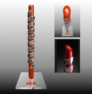 ![]() 在接力活動中他們所傳遞的倒不是聖火,而是一支特製的接力棒,上面繪有60種圖案標誌,每一個圖案都代表了在法拉利六十年光榮歲月中的重要賽事、活動。這60個圖案將由Editalia製作成琺瑯製品將裝飾在權杖上,另外也會製作出關於60個象徵圖案的海報。而為了紀念創廠六十週年所推出的六十部系列紀念車也在活動開始時正式發表。這六十部獨特的紀念車每部車同樣各象徵一件代表法拉利歷史的人、事、物,從世界冠軍Ascari、Schumacher到一些跨時代車款,如GTO、F40、Enzo等等。