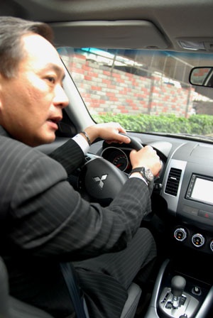 ▲為了幫公司的新產品搏版面,嚴凱泰親自下海當起最挑剔的試車手,還擔任司機來幫忙拉抬聲勢,對於Outlander 2.4的產品實力可是信心十足,讓三菱全體戰戰兢兢不敢懈怠,或許現在正以過去少主中興的精神帶兵吧。